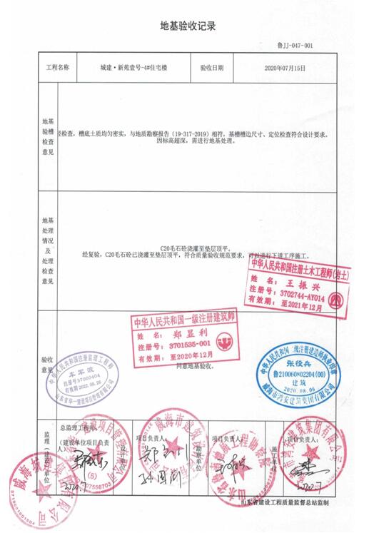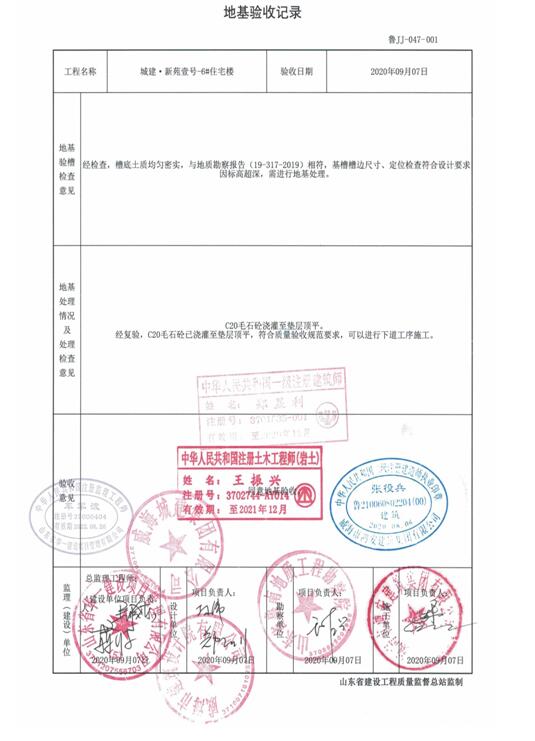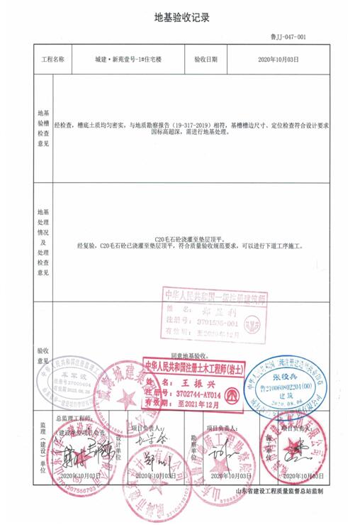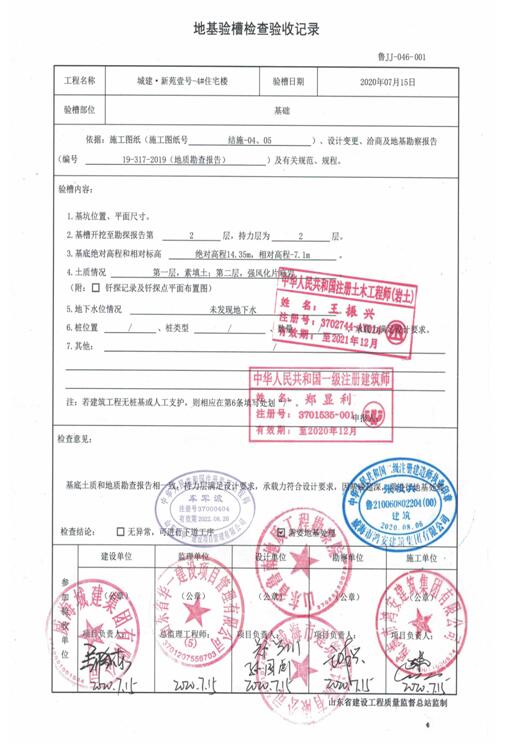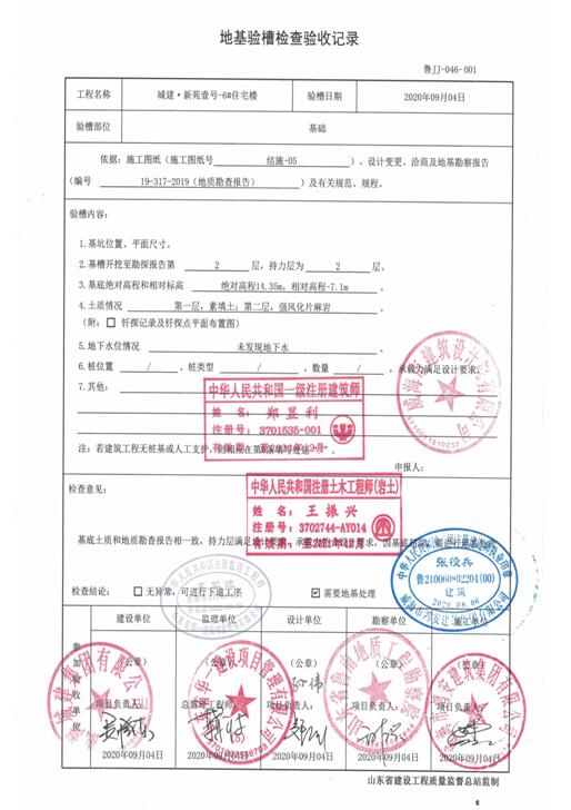 勘察單位:山東省魯南地質工程勘察院 負責人:王振興