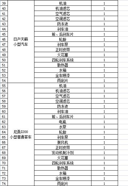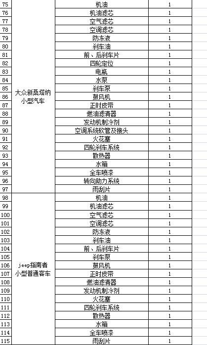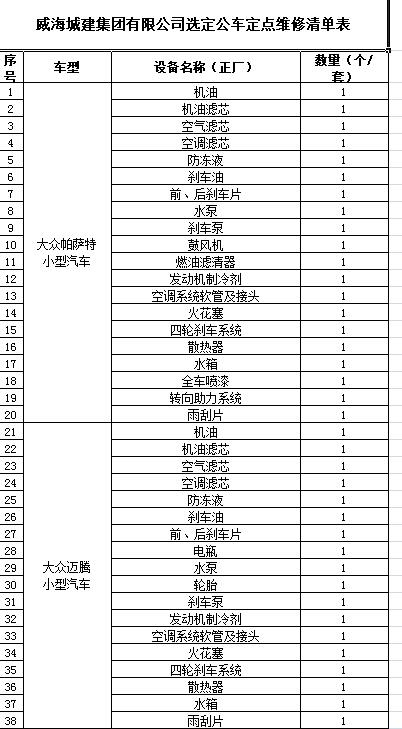 4)采購內容:威海城建集團10輛公車定點維修保養等服務內容,采購清單詳見附件。